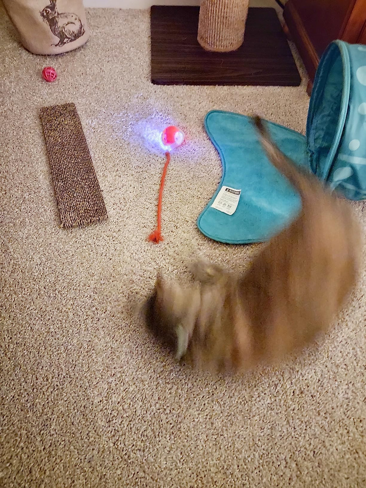 Den bevæger sig som et bytte, har en halelignende snor og vækker jagtinstinktet for alvor. Takket være Touch Trigger kan katten selv starte den, og med forskellige hastighedsniveauer bliver legen aldrig kedelig.